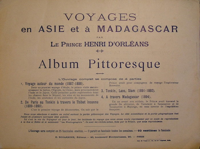- From Paris to Tonkin through unknown Tibet (1889-1890): It is the first voyage of discovery. It is known that the Prince had as a travelling companion Bonvalot the explorer.