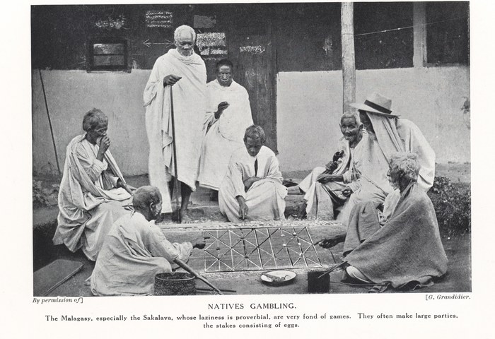 Natives Gambling: The Malagasy, especially the Sakalava, whose laziness is proverbial, are very fond of games. They often make large parties, the stakes consisting of eggs.