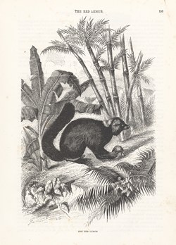 This print is an original full page that has been extracted from "Cassell's Popular Natural History: Mammalia, vol 1" published around 1863. The identity of the artist is not known. A footnote in the book identifies the red lemur as Lemur ruber (now Varecia rubra).
