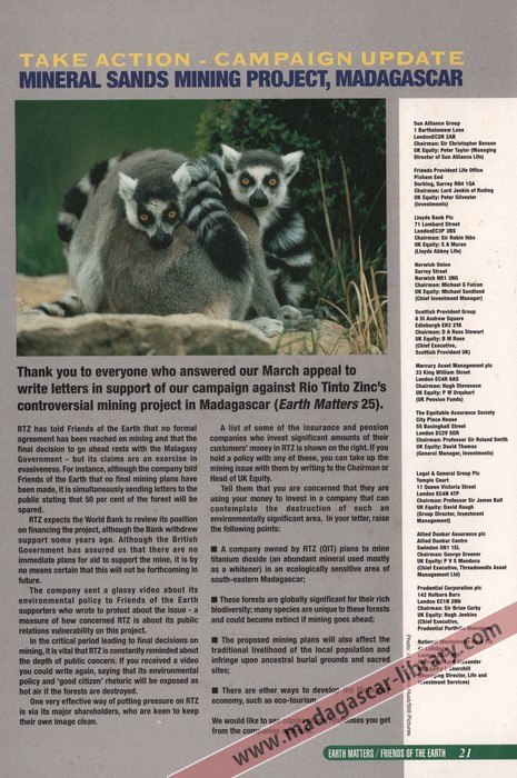 Take Action – Campaign Update: Mineral Sands Mining Project, Madagascar