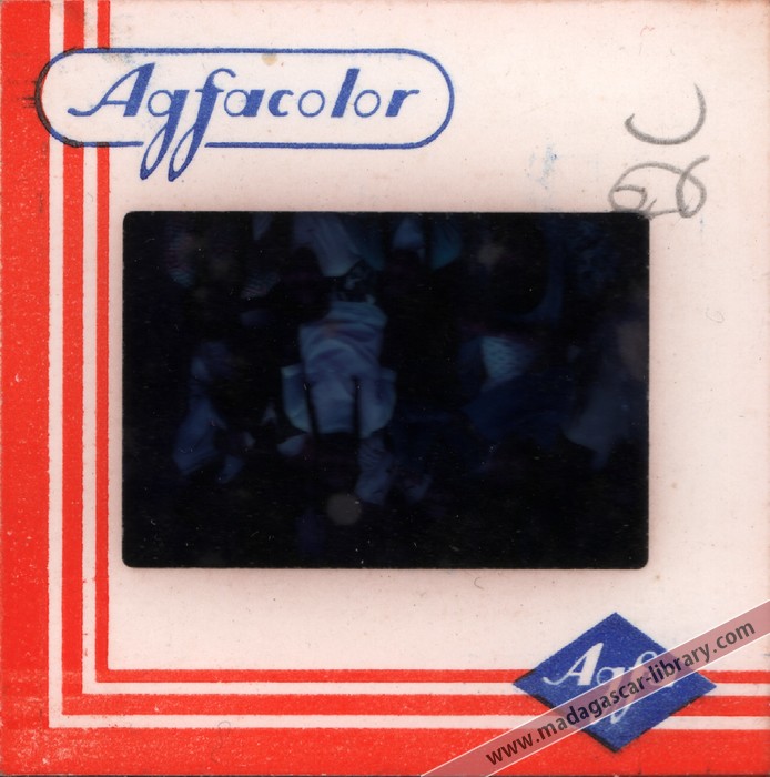 • When this collection of 237 slides was donated to the Madagascar Library in 2010, it was accompanied by an original index of 273 captions, so evidently a few slides had been lost over the years. Furthermore, the slides were not individually labelled and their sequence did not tally with the index. It is therefore possible that in a few cases slides may have been matched with the wrong caption during cataloguing. If you think this slide is incorrectly titled, please get in touch.