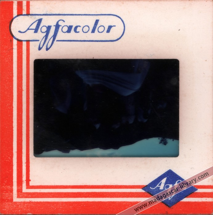 • When this collection of 237 slides was donated to the Madagascar Library in 2010, it was accompanied by an original index of 273 captions, so evidently a few slides had been lost over the years. Furthermore, the slides were not individually labelled and their sequence did not tally with the index. It is therefore possible that in a few cases slides may have been matched with the wrong caption during cataloguing. If you think this slide is incorrectly titled, please get in touch.