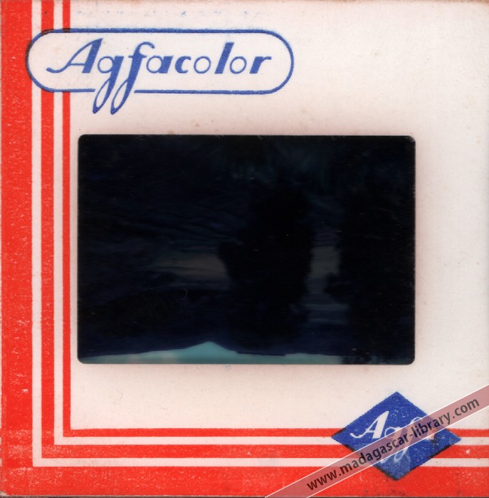 • When this collection of 237 slides was donated to the Madagascar Library in 2010, it was accompanied by an original index of 273 captions, so evidently a few slides had been lost over the years. Furthermore, the slides were not individually labelled and their sequence did not tally with the index. It is therefore possible that in a few cases slides may have been matched with the wrong caption during cataloguing. If you think this slide is incorrectly titled, please get in touch.