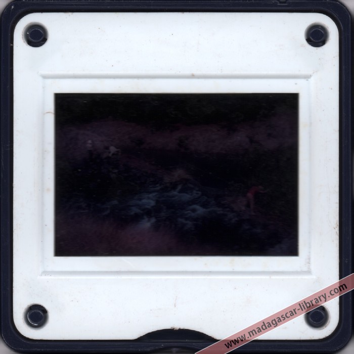 • When this collection of 237 slides was donated to the Madagascar Library in 2010, it was accompanied by an original index of 273 captions, so evidently a few slides had been lost over the years. Furthermore, the slides were not individually labelled and their sequence did not tally with the index. It is therefore possible that in a few cases slides may have been matched with the wrong caption during cataloguing. If you think this slide is incorrectly titled, please get in touch.