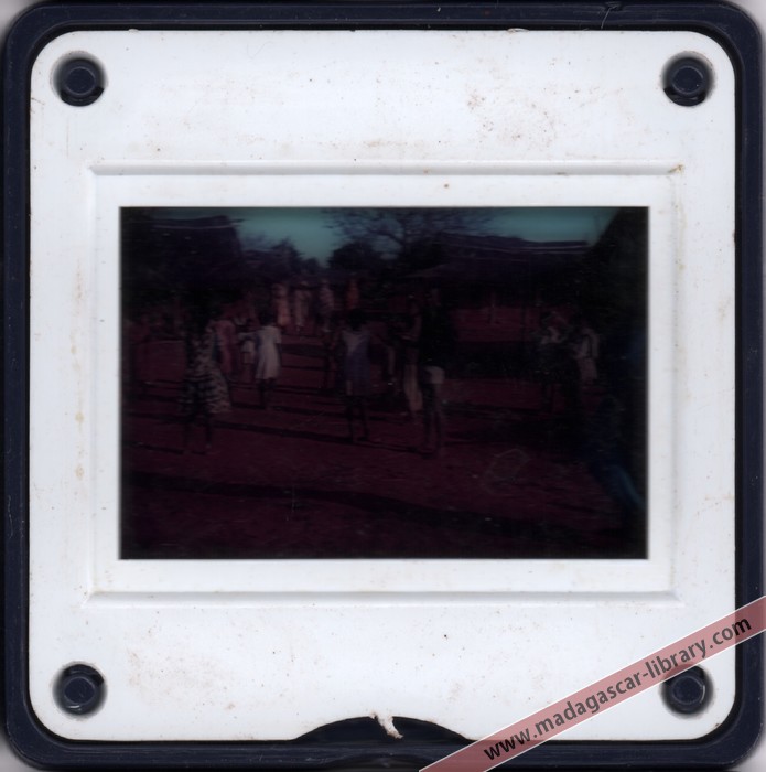 • When this collection of 237 slides was donated to the Madagascar Library in 2010, it was accompanied by an original index of 273 captions, so evidently a few slides had been lost over the years. Furthermore, the slides were not individually labelled and their sequence did not tally with the index. It is therefore possible that in a few cases slides may have been matched with the wrong caption during cataloguing. If you think this slide is incorrectly titled, please get in touch.