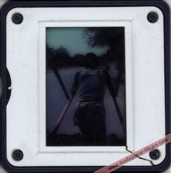 • When this collection of 237 slides was donated to the Madagascar Library in 2010, it was accompanied by an original index of 273 captions, so evidently a few slides had been lost over the years. Furthermore, the slides were not individually labelled and their sequence did not tally with the index. It is therefore possible that in a few cases slides may have been matched with the wrong caption during cataloguing. If you think this slide is incorrectly titled, please get in touch.